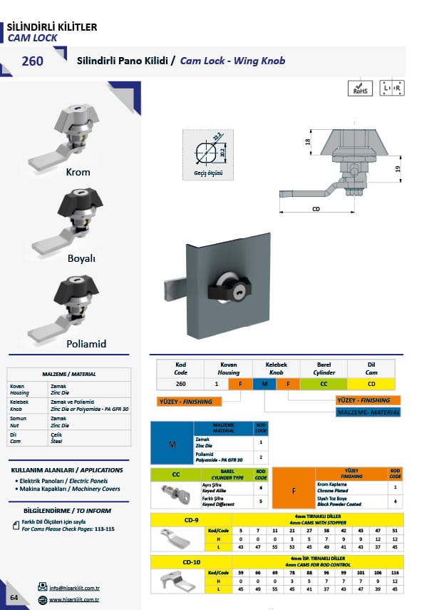 Katalog Sayfası Ek bilgi Kovan Zamak Kelebek Zamak – Poliamid PA6 GFR 30 Somun Zamak Dil Çelik Kullanım Alanları • Elektrik Panoları• Makine Kapakları